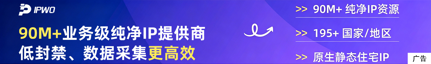IPWO 提供的真实住宅 IP,大幅降低被封禁风险。195 + 国家 / 地区精准定位,轻松应对大型爬虫任务。让爬虫更简单,让数据更安全。戳本信息注册可获得有效保护账号的高匿名ip流量。